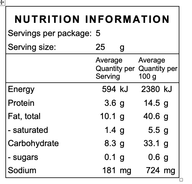 Ingredients: Wheat flour, olive oil, seeds (41%) [linseed, pumpkin, sesame, sunflower], rolled oats, salt (1%), raising agents (450, 500), rosemary extract.