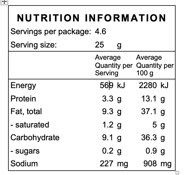 Ingredients: Seeds (45%) [linseeds, pumpkin, sesame, sunflower], brown rice flour, olive oil, white rice flour, potato starch, tapioca starch, salt (2%), raising agents (450, 500), rosemary extract.